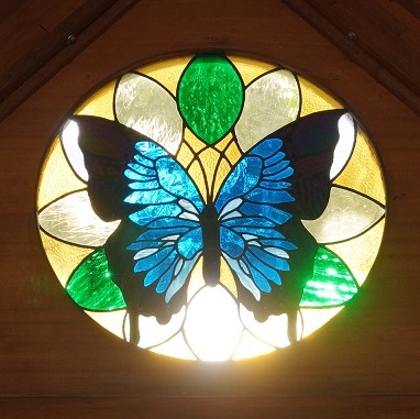 A stained glass window at Trinity Lutheran Church, Cairns.